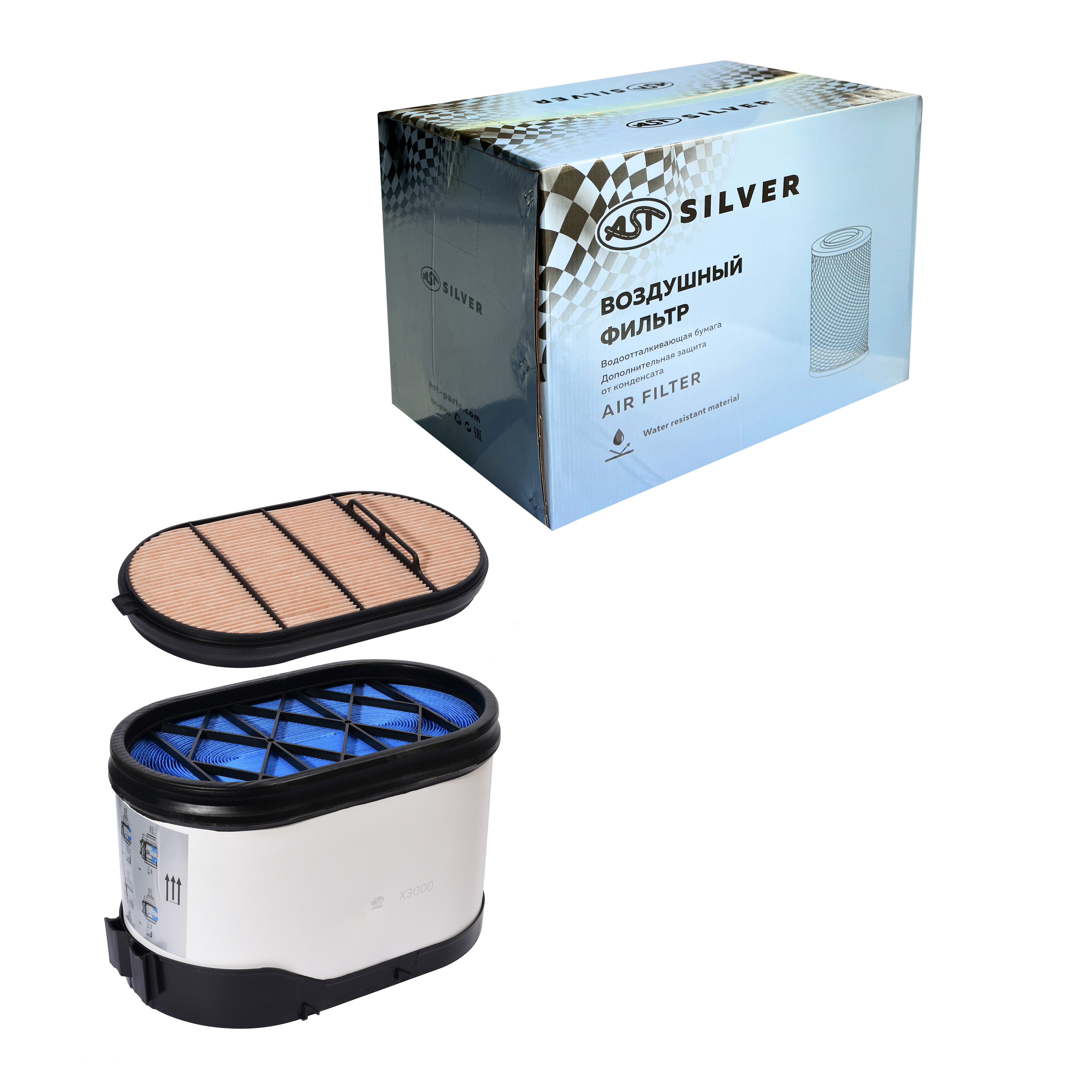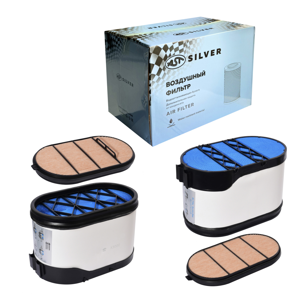 Фильтр воздушный WP13 X3000/Yutong 2023 г. овальный 440x260 H=280 (AST1572/DZ97259191047+DZ97259191048) AST Silver