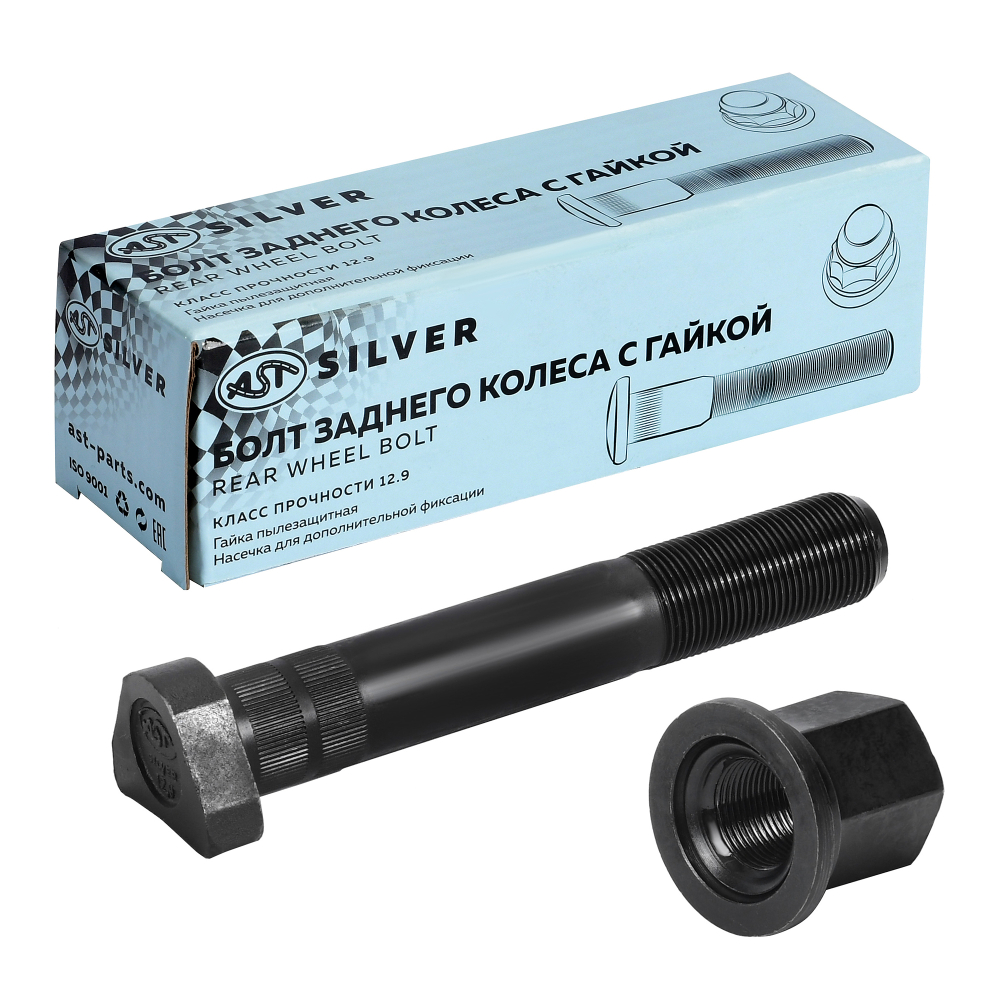 Шпилька колеса с гайкой AST D-22 L-139/151 (12.9) с насечкой ОТКРЫТАЯ (AST1728) Silver - купить в надежной компании